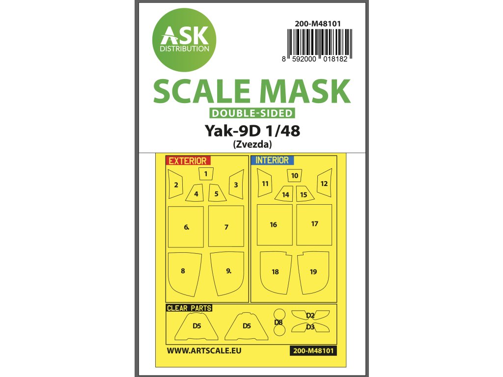 1/48 Yak-9D double-sided express mask, self-adhesive, pre-cutted for Zvezda