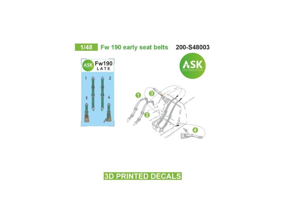 1/48 Fw 190 early seat belts - 3D printed decals by ASK