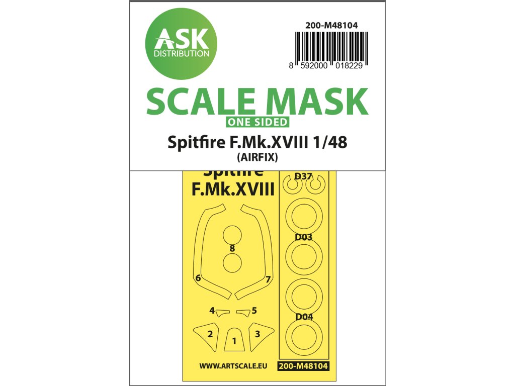 1/48 Spitfire F.Mk.XVIII one-sided mask self-adhesive, pre-cutted for Airfix