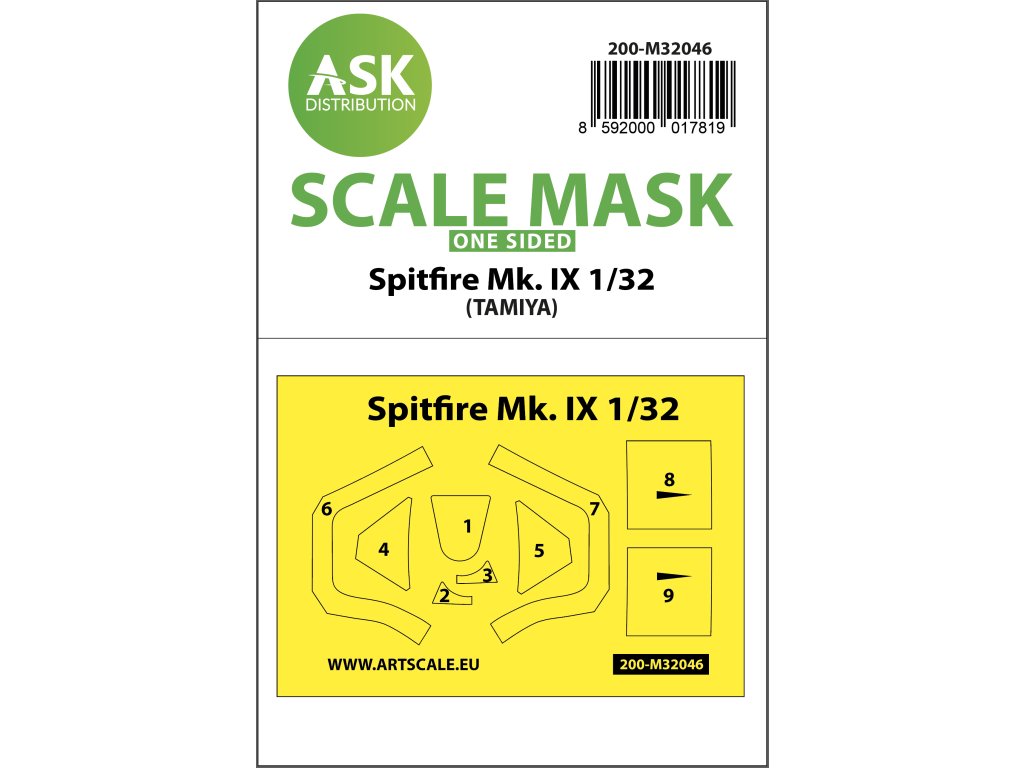 1/32 Spitfire Mk.IX one-sided masks for Tamiya
