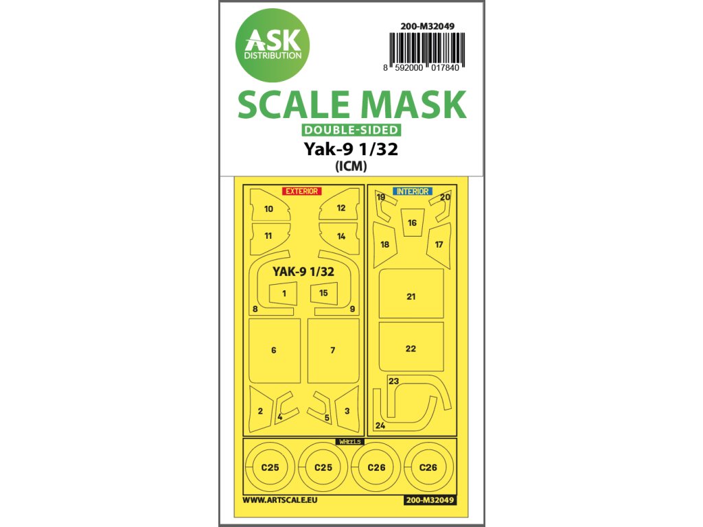 1/32 Yak-9 double-sided pre-cutted mask for ICM