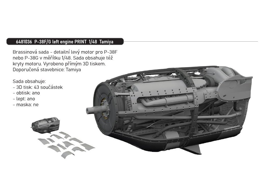 1/48 P-38F/G left engine PRINT (TAMIYA)