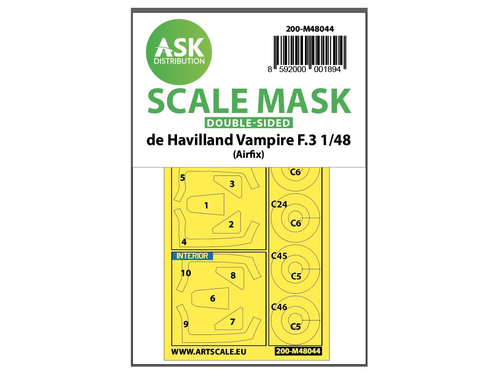 1/48 De Havilland Vampire F.3 double-sided painting mask for Airfix
