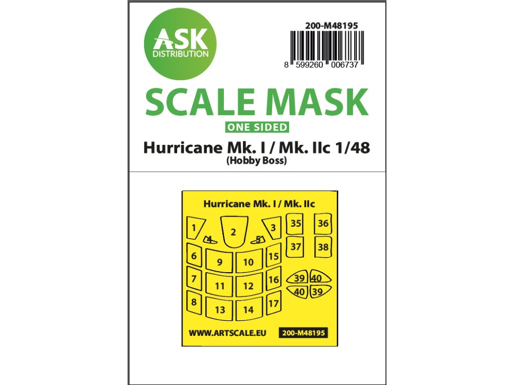 1/48 Hawker Hurricane Mk.I / Mk.IIc one-sided express fit mask for Hobby Boss