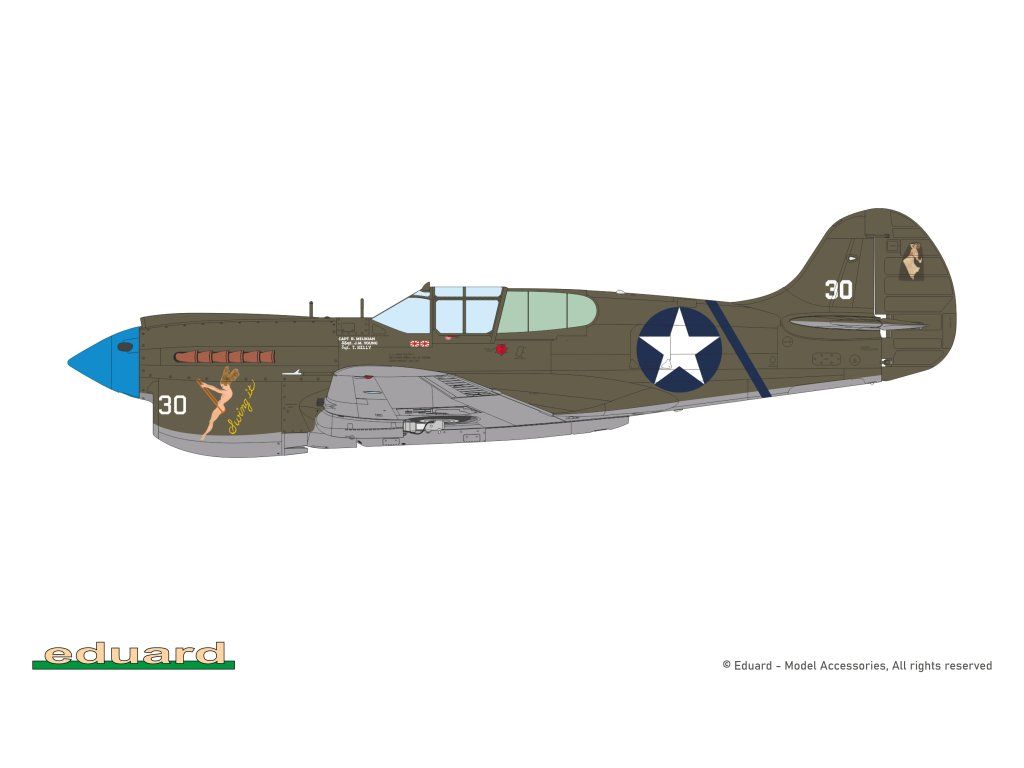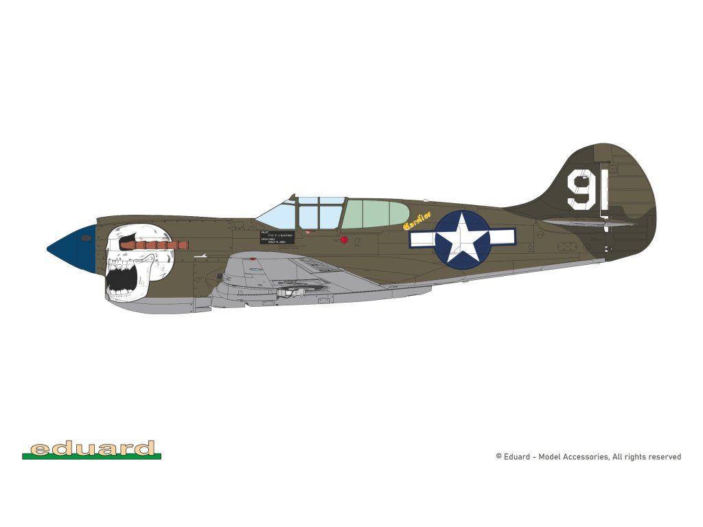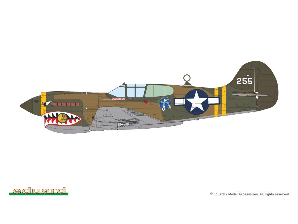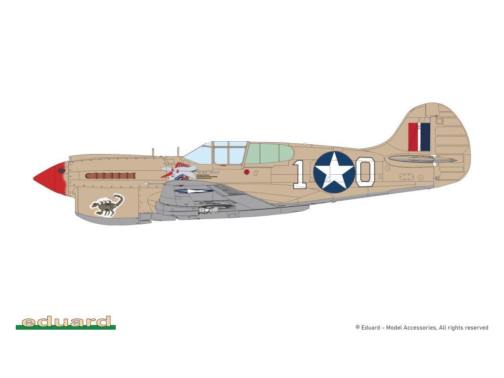 Stavebnice obsahuje plastové rámečky pro dvě P-40K, z nichž je možné postavit stíhačky sloužící u USAAF, RAF, SAAF.
