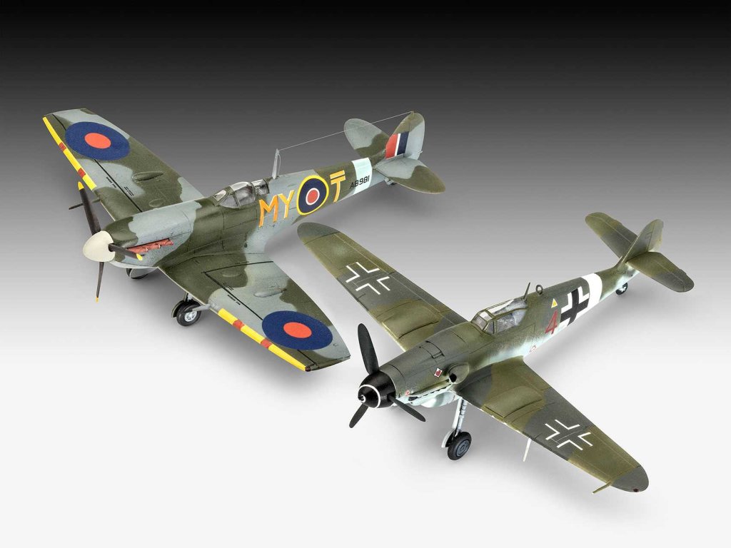 Sada dvou modelů sestávající z Bf109G-10 a Spitfire Mk.V. Tyto stíhací letouny byly aktéry vzdušných bitev druhé světové války.
