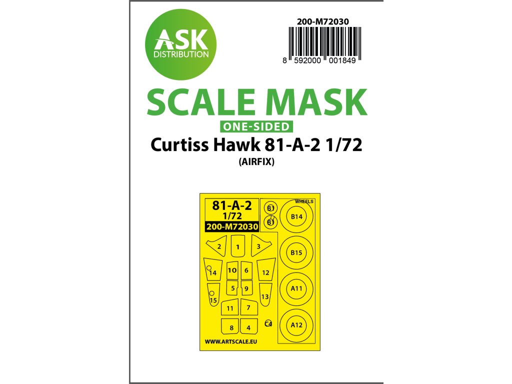 1/72 Curtiss Hawk 81-A-2 one-sided painting mask for Airfix