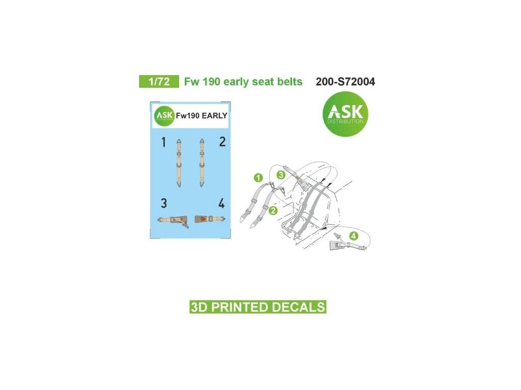 1/72 Fw 190 early seat belts - 3D printed decals by ASK