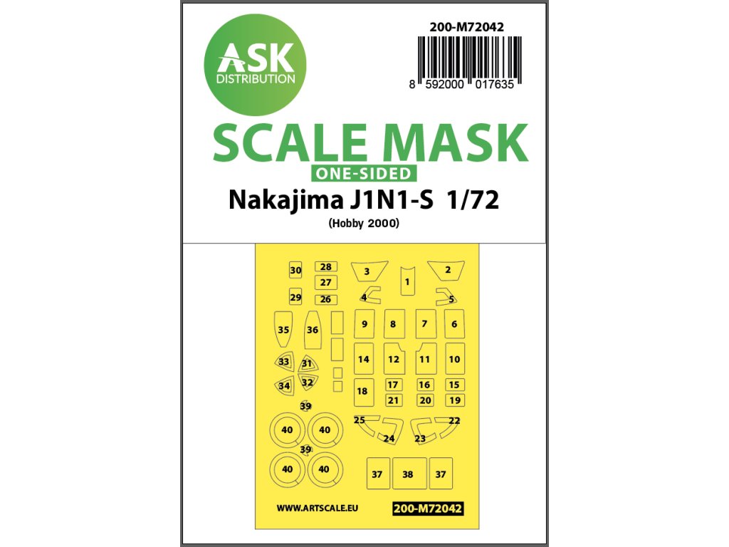 1/72 Nakajima J1N1-S one-sided painting mask for Hobby2000 / Fujimi