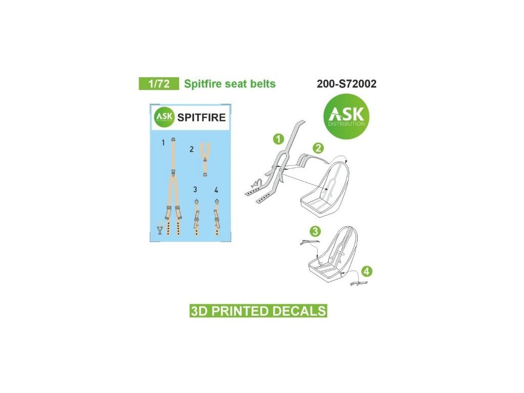 1/72 Spitfire seat belts - 3D printed decals by ASK