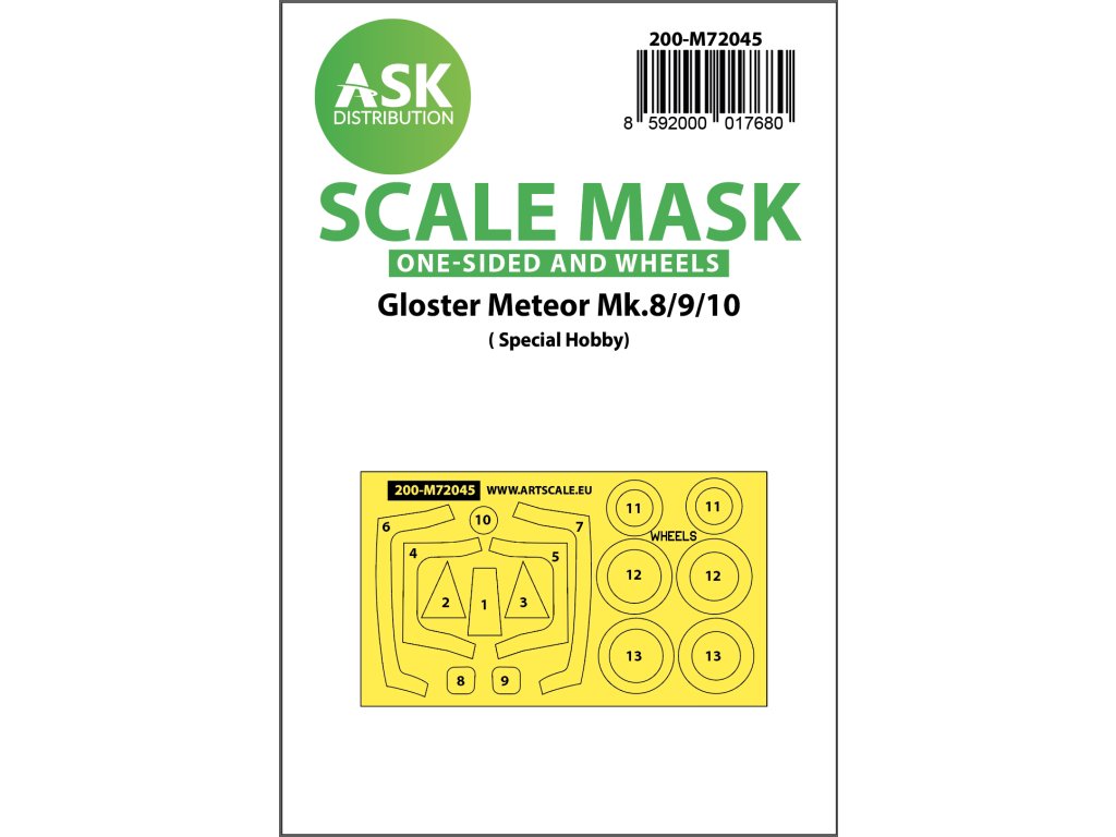 1/72 Gloster Meteor Mk.8/9/10 one-sided painting mask for Special Hobby
