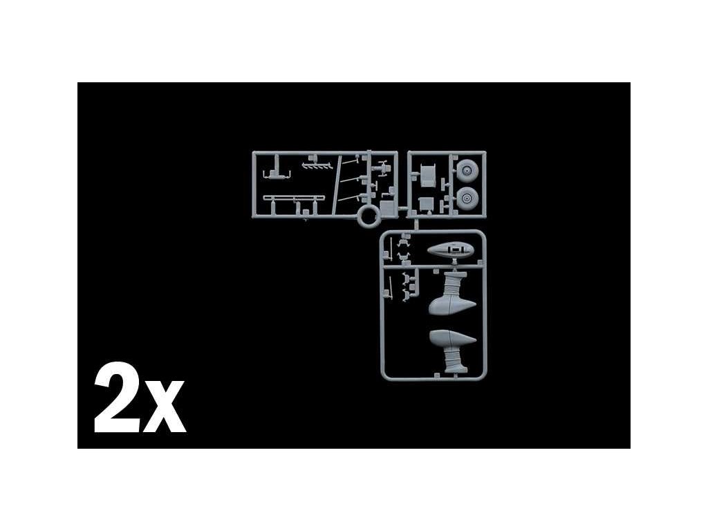 Model letadla ke slepení. Velikost: 1:48; 22,9 cm. Balení obsahuje polepy pro 5 verzí modelu.Informace o originálu: